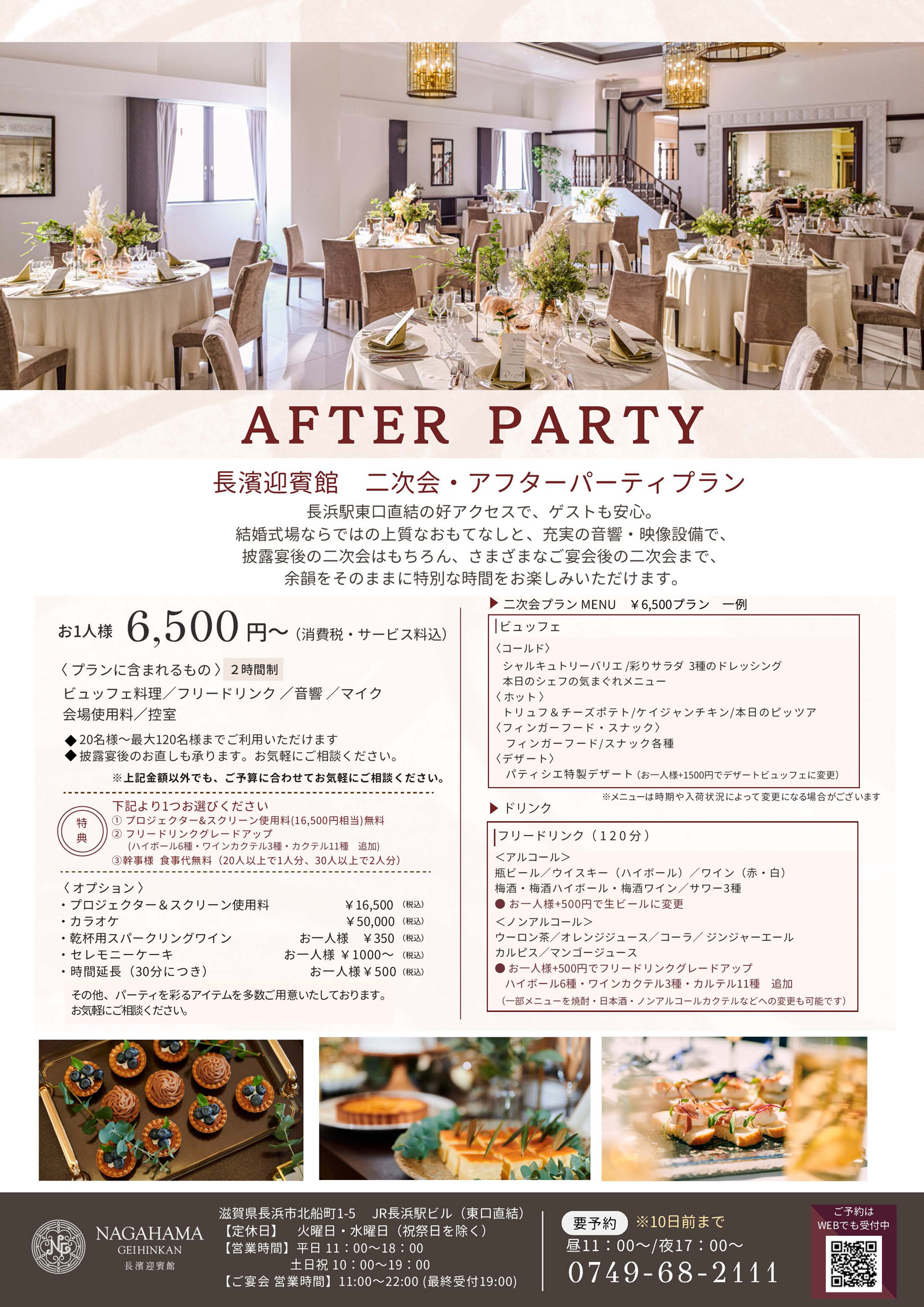 披露宴後の二次会はもちろん、さまざまなご宴会後の二次会まで、